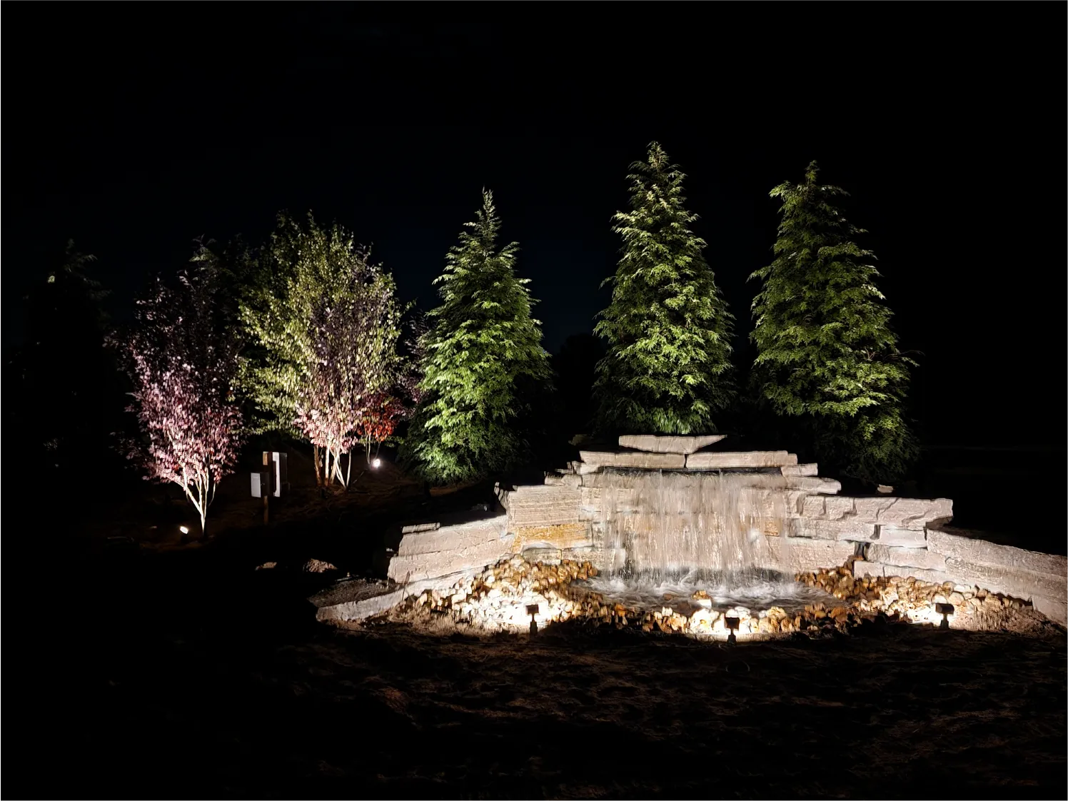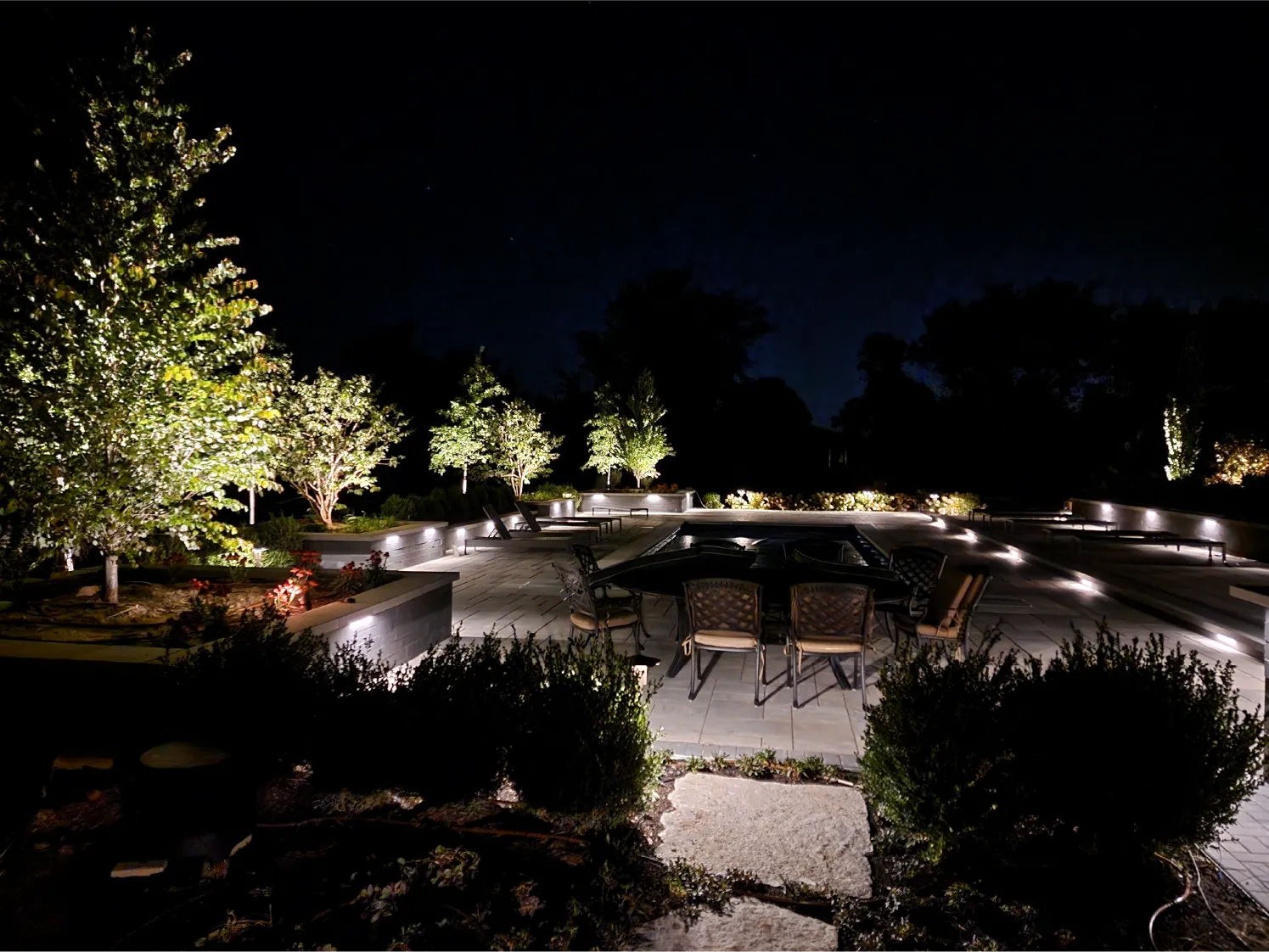 Outdoor lighting was designed to create the perfect atmosphere for any time of day or night. Color-change options and integrated sound systems allow the client to coordinate mood lighting with music at the push of a button, enhancing every gathering.