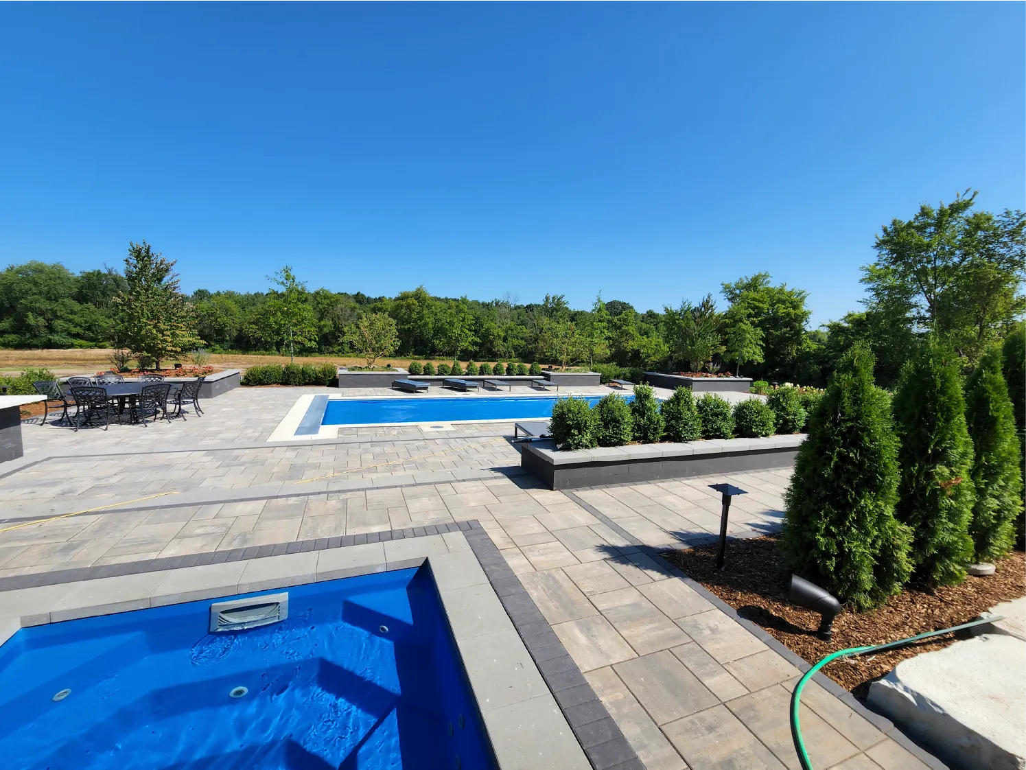 The Architectural Oasis project involved new construction on a large contemporary home, where the goal was to create a landscape that elevated the architecture while prioritizing entertainment and functionality.